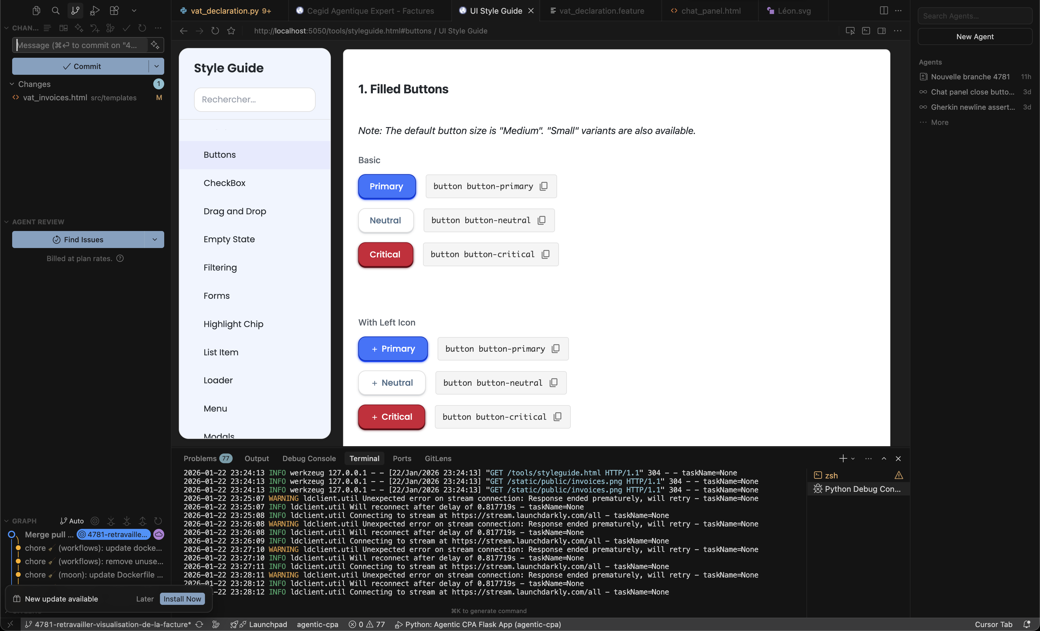 To maintain quality, I built an agent capable of automatically checking the state of components for compliance and suggesting corrections if needed. This system allowed the team to continuously validate the UI without manual intervention.